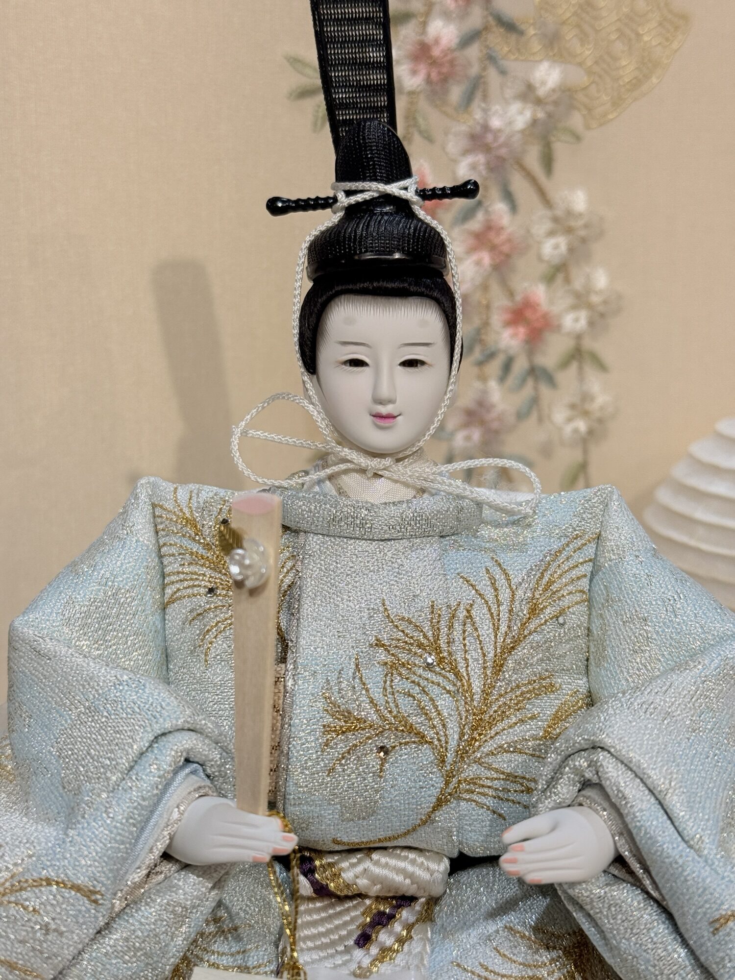 女雛の重ねは、あえて色味を抑えることで、