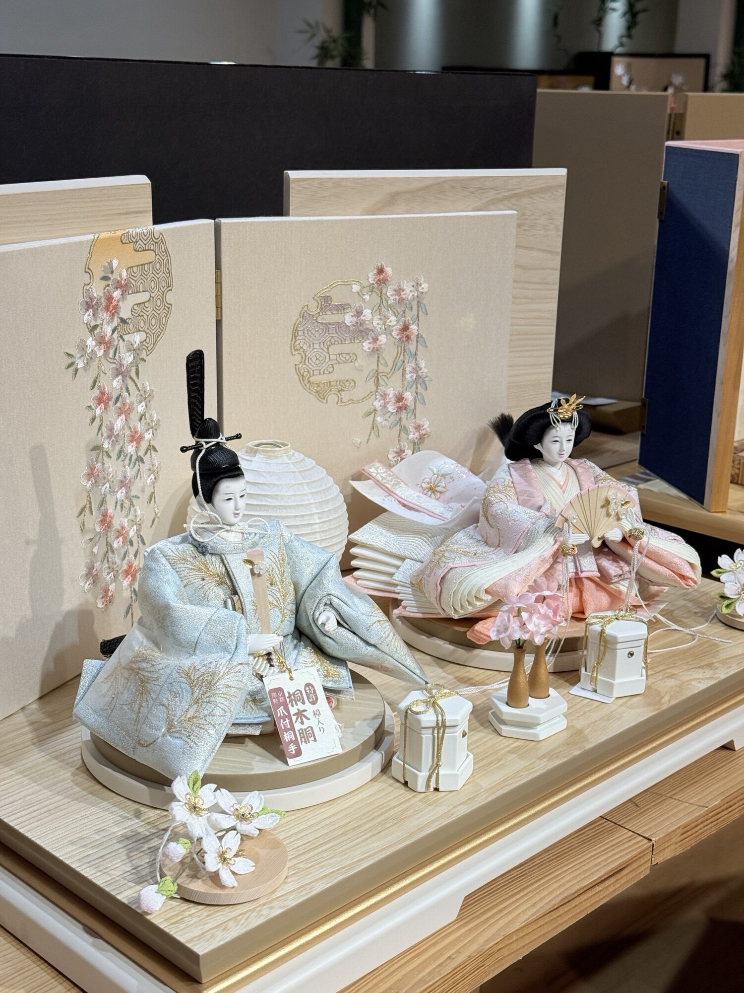 やさしく愛らしい佇まいのお雛飾りでございます。